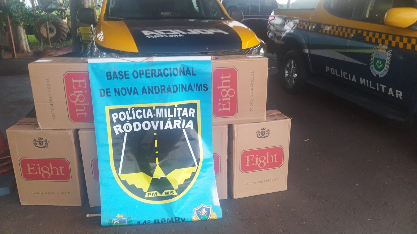 Campo Grande/MS – A equipe da Base Operacional de Nova Andradina, da Polícia Militar Rodoviária, apreendeu na tarde desta quarta-feira (20/04) carga de contrabando de cigarros, durante Operação Tiradentes 2022. Os militares realizavam fiscalização de