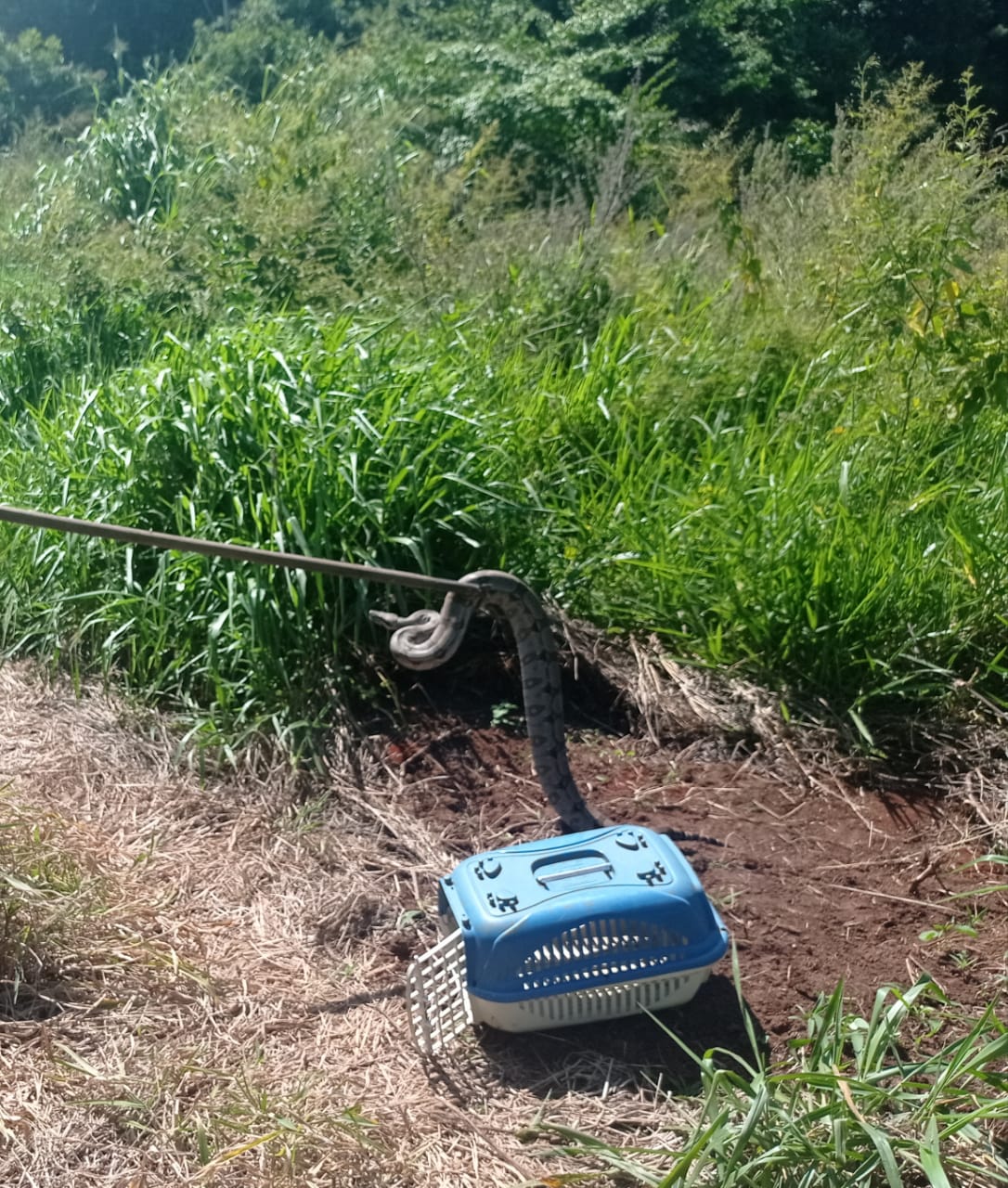 Campo Grande (MS) – Policiais Militares Ambientais de Bonito capturaram uma serpente em uma residência hoje (22) no final da manhã. O morador da residência, localizada no condomínio Residencial Solar dos Lagos, acionou a PMA para realizar a captura da