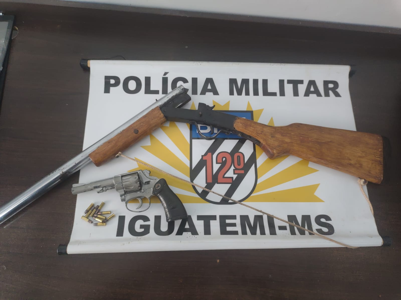 Iguatemi (MS) – Na tarde de sábado (16/04), por volta das 14h, policiais militares da 2ª Companhia de Polícia Militar de Iguatemi, ao atender ocorrência de violência doméstica, prenderam um homem por posse irregular e ilegal de armas de fogo em