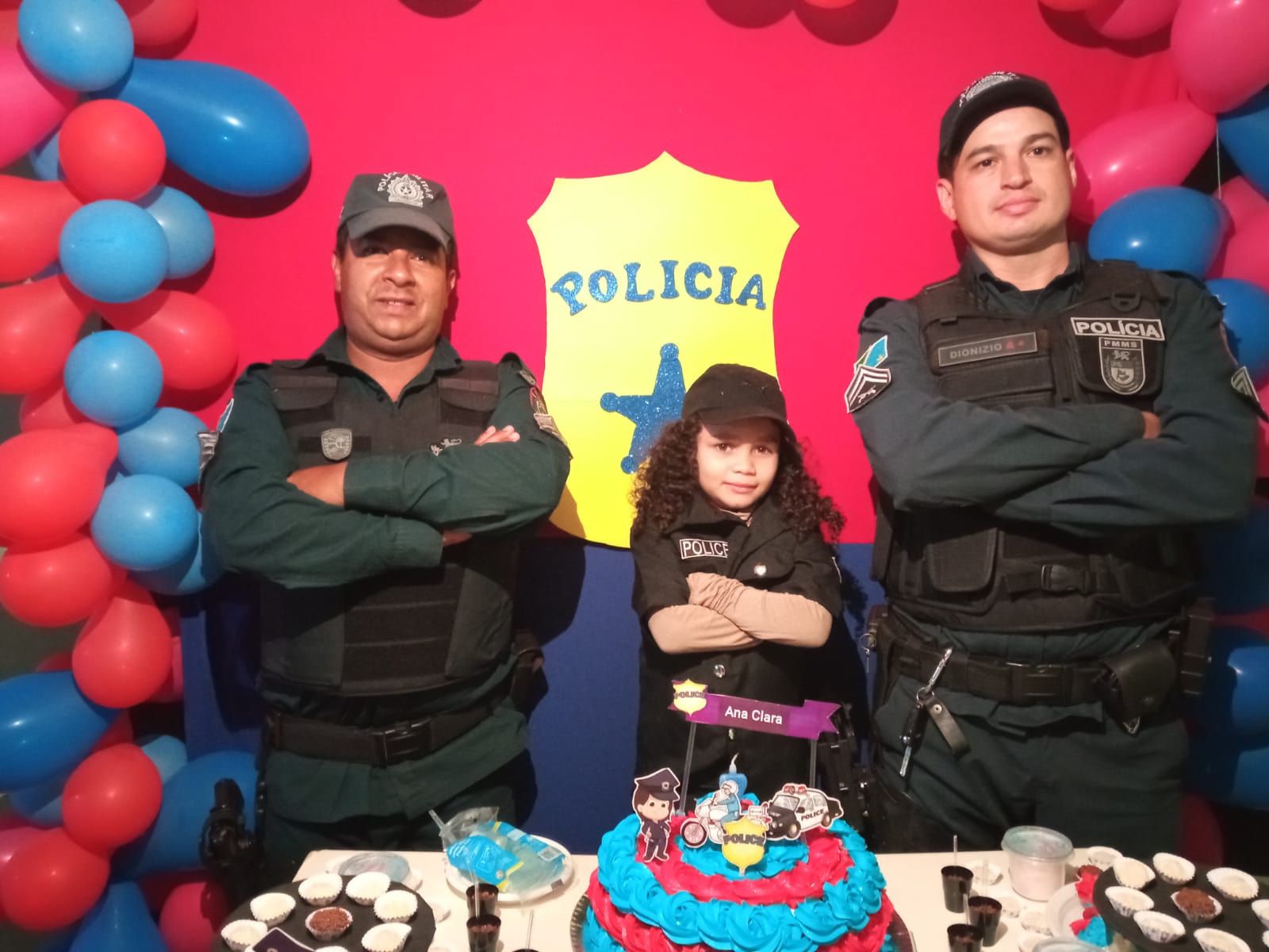Fátima do Sul (MS) – Neste sábado (16/04), os policiais militares da sede do 14°Batalhão da Polícia Militar foram surpreendidos com o convite para o aniversário de 07 (sete) anos de idade da pequena Ana Clara, que escolheu o tema policial para