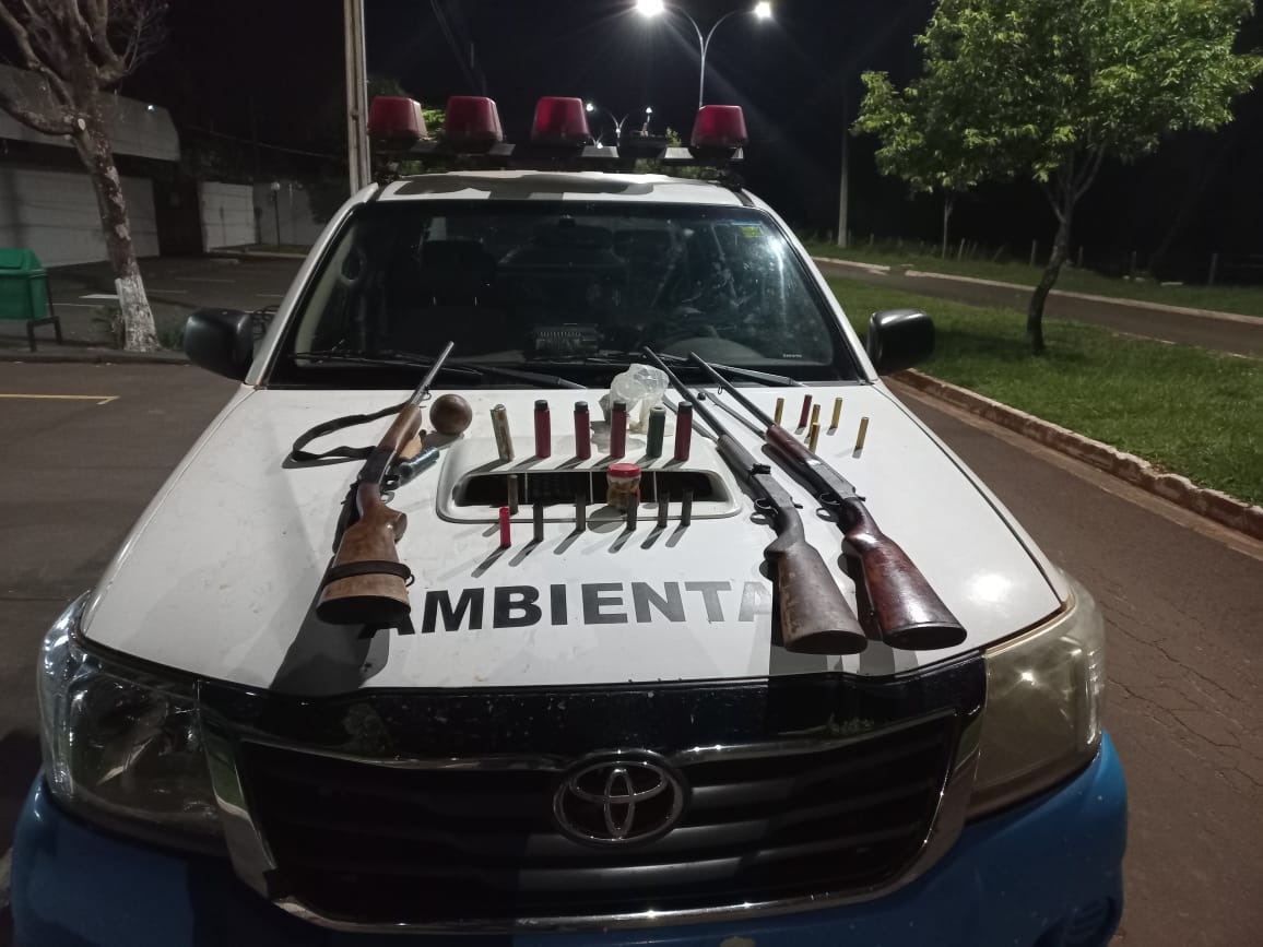 Campo Grande (MS) – Três caçadores, o pai e dois filhos, de 63, 44 e 39 anos, foram presos por Policiais Militares Ambientais do Grupamento do Parques Estadual das Várzeas do Rio Ivinhema, que trabalham na operação Semana Santa, ontem (16) às 19h00,