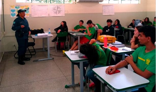 Camapuã (MS) – Na manhã desta terça-feira (05/04), foi ministrada uma palestra sobre a Lei Maria da Penha para alunos da Escola Estadual Camilo Bonfim, em Camapuã-MS. A Polícia Militar, por meio da Sargento Divanir Ferreira da Silva, atendeu a uma