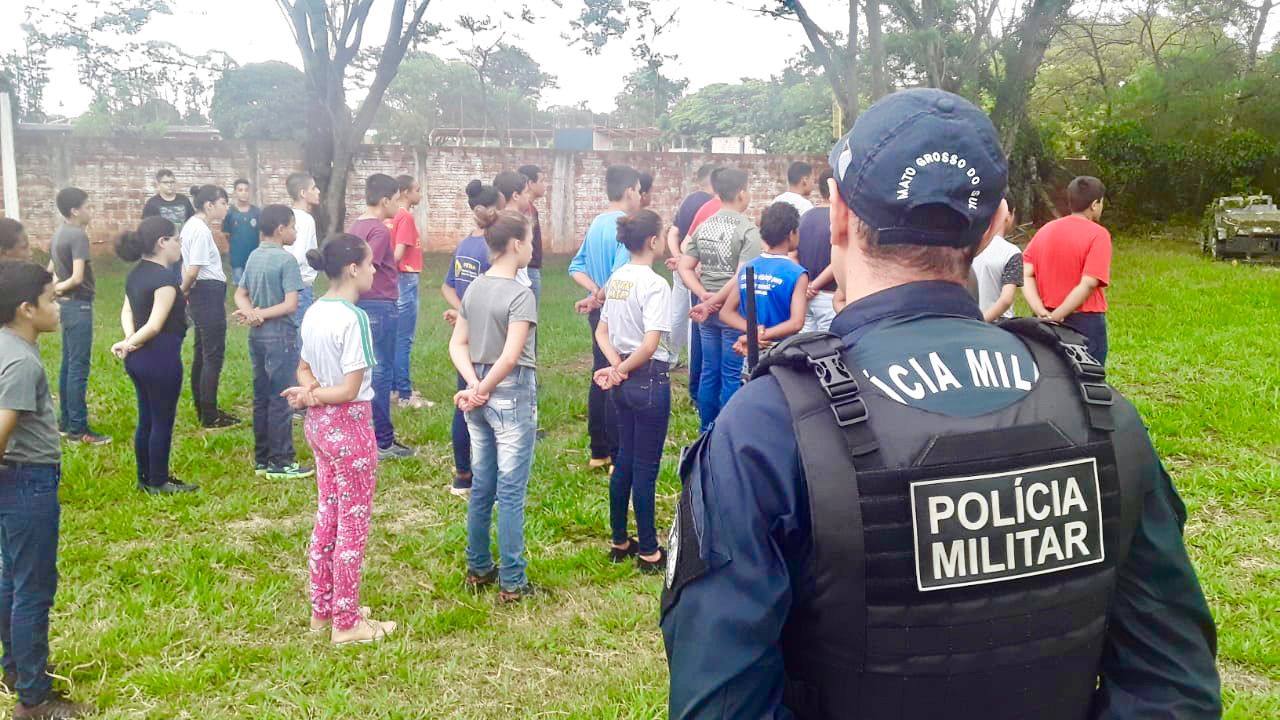 Naviraí (MS) – Na manhã de sexta-feira (01/04), foi iniciado o ano letivo de 2022 da Guarda Mirim de Naviraí. A Polícia Militar do 12º Batalhão foi responsável por ministrar as atividades no primeiro dia de aula da instituição, o Soldado