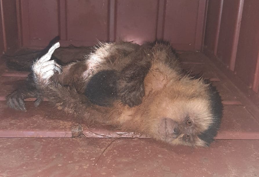 Campo Grande (MS) – Policiais Militares Ambientais de Campo Grande receberam informação de uma moradora do bairro Maria Aparecida Pedrossian, de que havia uma fêmea de macaco-prego doente à margem da mata que margeia o bairro e que estaria com o