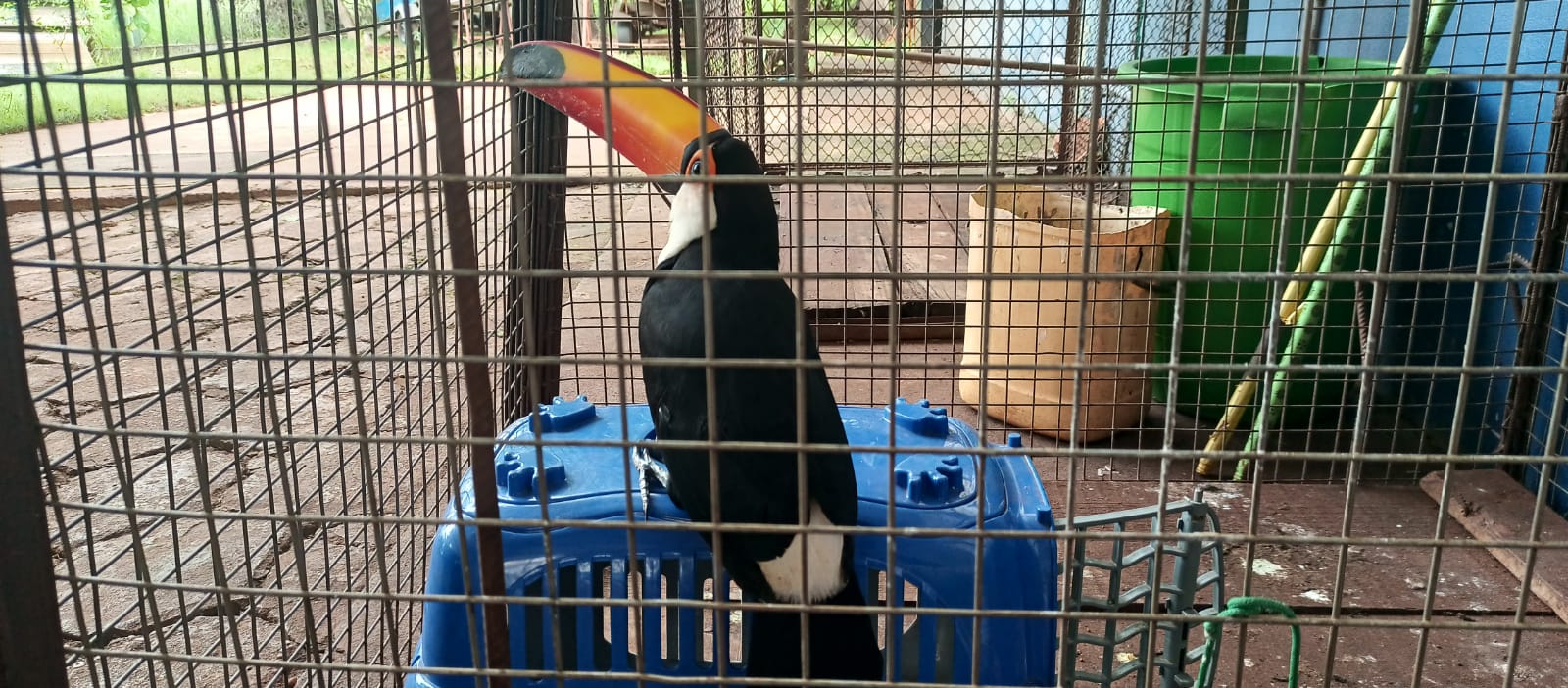 Campo Grande (MS) – Policiais Militares Ambientais de Dourados receberam um comunicado hoje (4) no final da manhã, relativo a um animal silvestre da espécie Ramphastos toco (tucano) que teria caído no pátio de uma agência dos correios, localizada