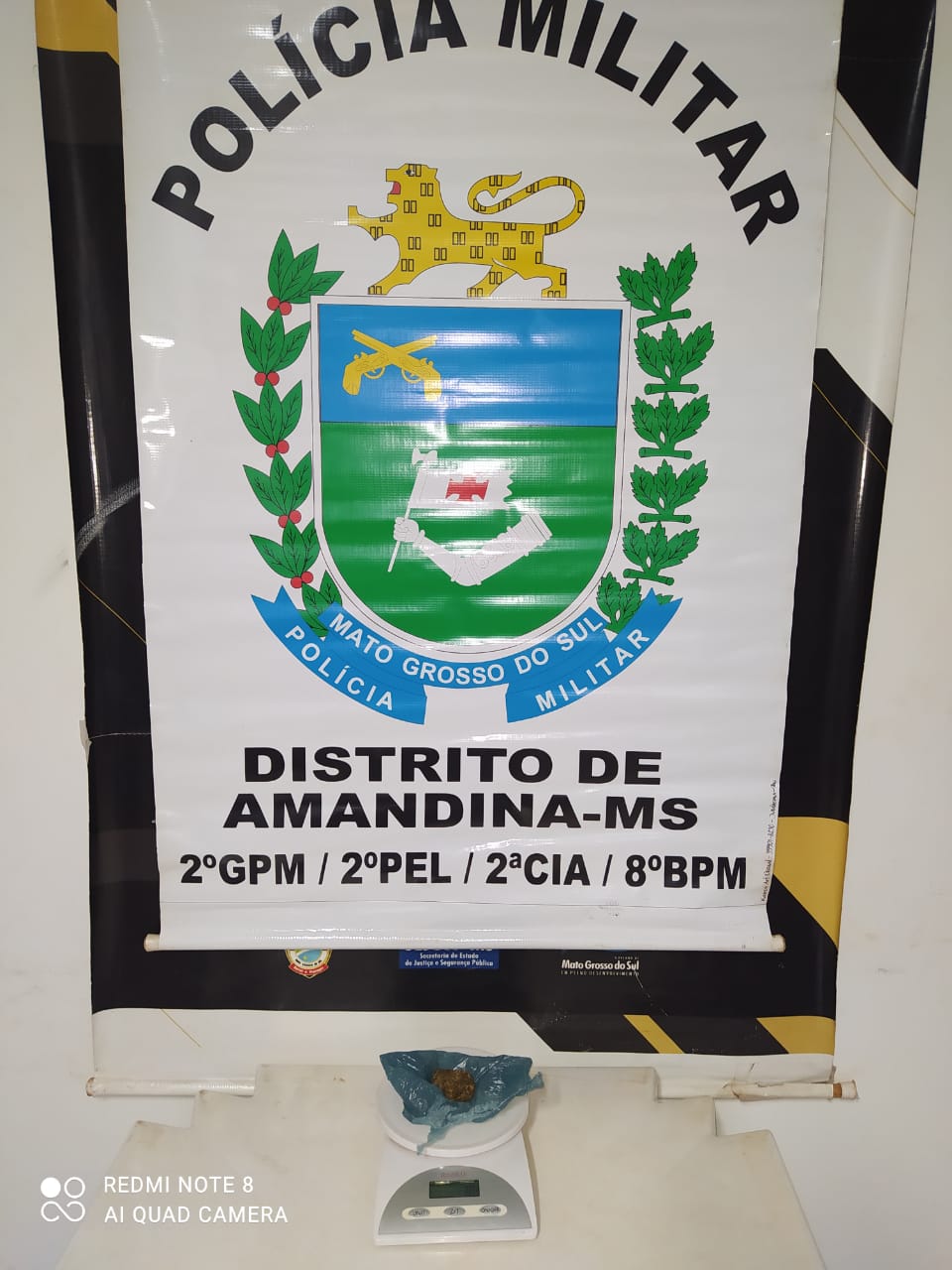 Nova Andradina (MS) – A Polícia Militar do Estado do Mato Grosso do Sul, através da equipe de Radiopatrulha de Amandina, distrito de Ivinhema, prendeu na tarde de quinta-feira (31) um homem de 28 anos após ser flagrado portando droga para o consumo.