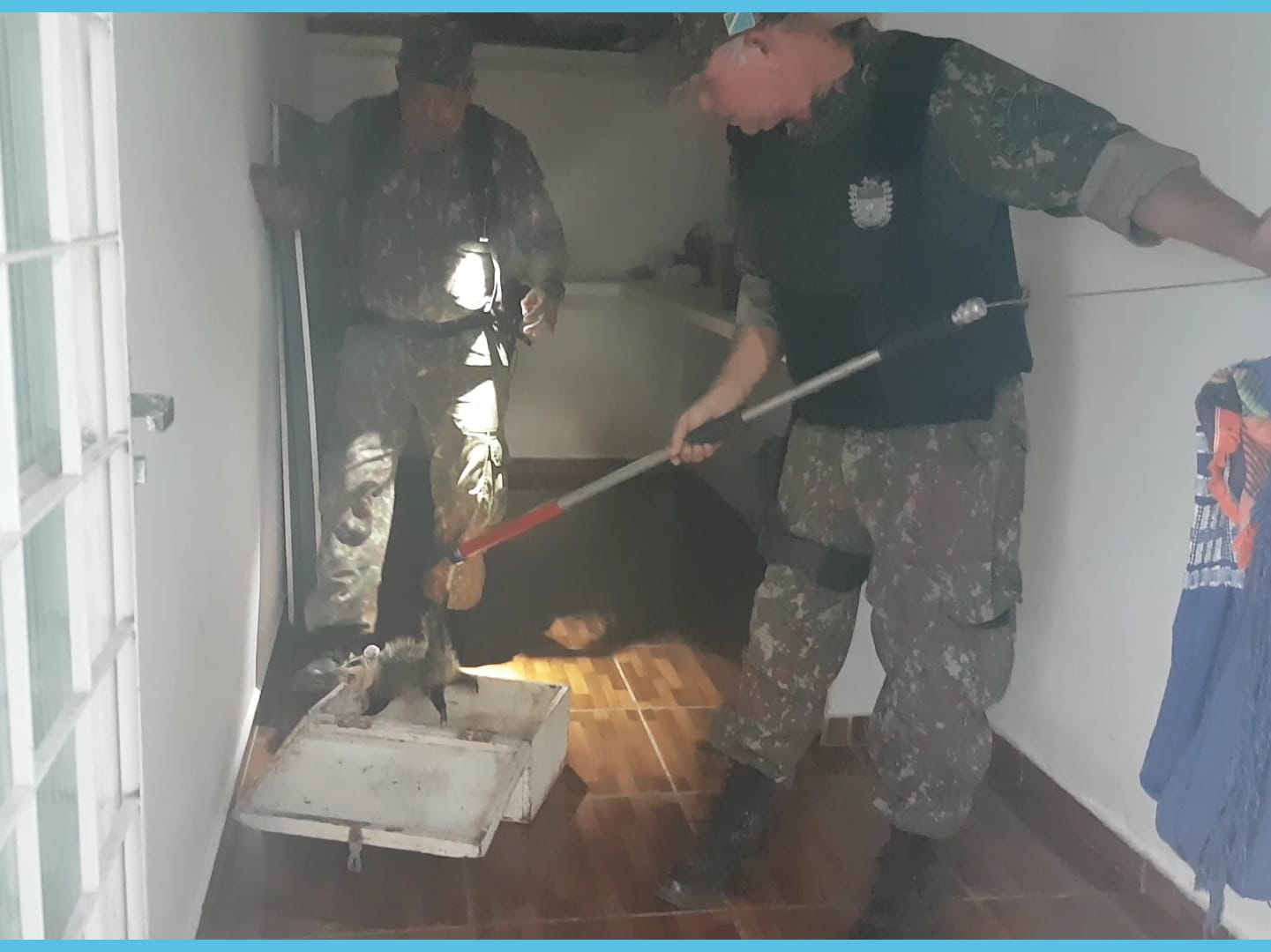 Campo Grande (MS) – Um jovem de 22 anos, morador em uma residência localizada no bairro Jardim Aeroporto, telefonou para os Policiais Militares Ambientais de Corumbá, solicitando a captura hoje (28) pela manhã de um gambá (Didelphis albiventris), que
