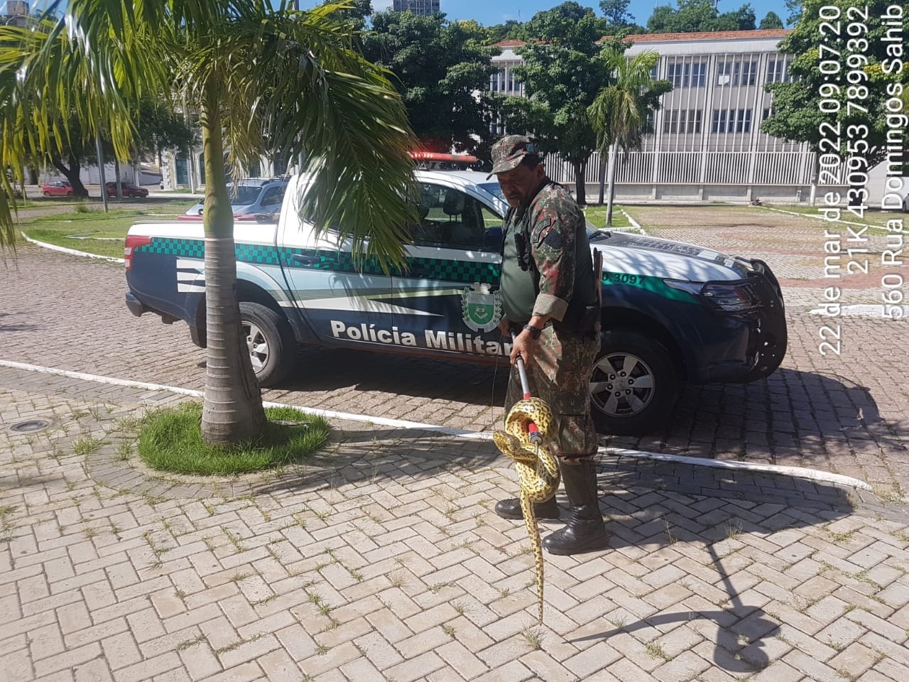 Campo Grande (MS) – Um filhote de animal silvestre da espécie Eunectes notaeus (sucuri-amarela) foi capturado hoje (22) pela manhã, por Policiais Militares Ambientais de Corumbá. A equipe foi acionada por um funcionário que trabalha no Centro de