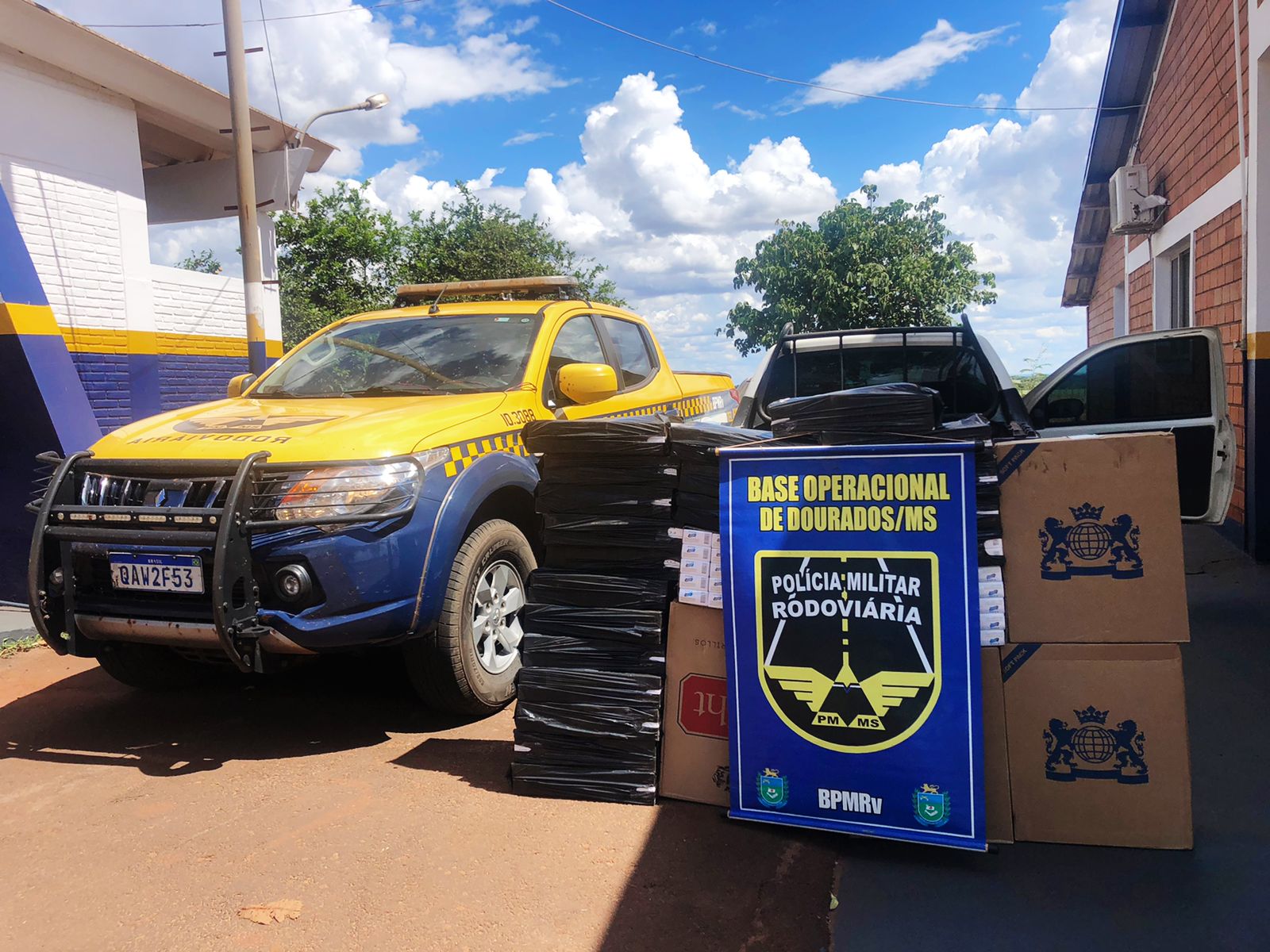 Campo Grande/MS – A equipe da Base Operacional de Dourados da Polícia Militar Rodoviária apreendeu na manhã de sábado (05/03), veículo com carga de contrabando de cigarro, durante Operação Hórus. A apreensão ocorreu por volta das 11h30min , quando