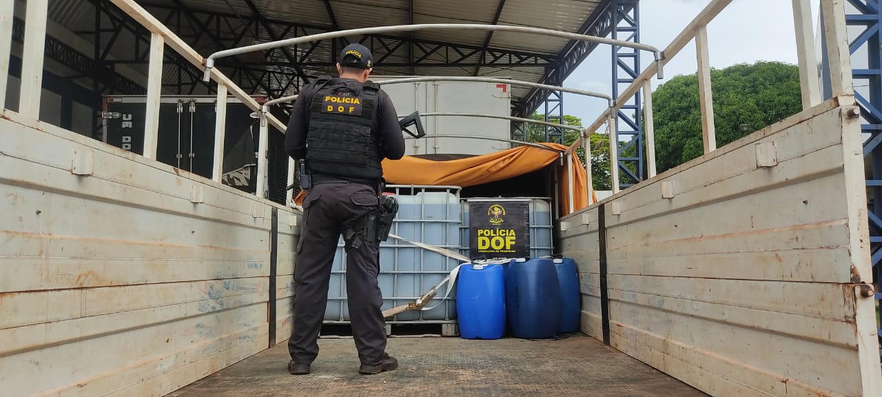 Dourados (MS), 26 de fevereiro – Policiais do Departamento de Operações de Fronteira (DOF) apreenderam, na manhã de ontem, três contêineres com 3.000 litros de herbicida e oito tambores com mais 400 litros, do mesmo produto, de origem estrangeira e uso