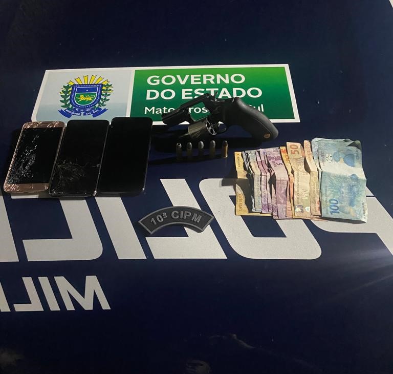 Policiais Militares da 10ª CIPM – Companhia Independente de Polícia Militar – prenderam na madrugada deste sábado (26) um homem por porte ilegal de arma de fogo de uso permitido e outros dois foragidas da justiça criminal. Em rondas pela Av.