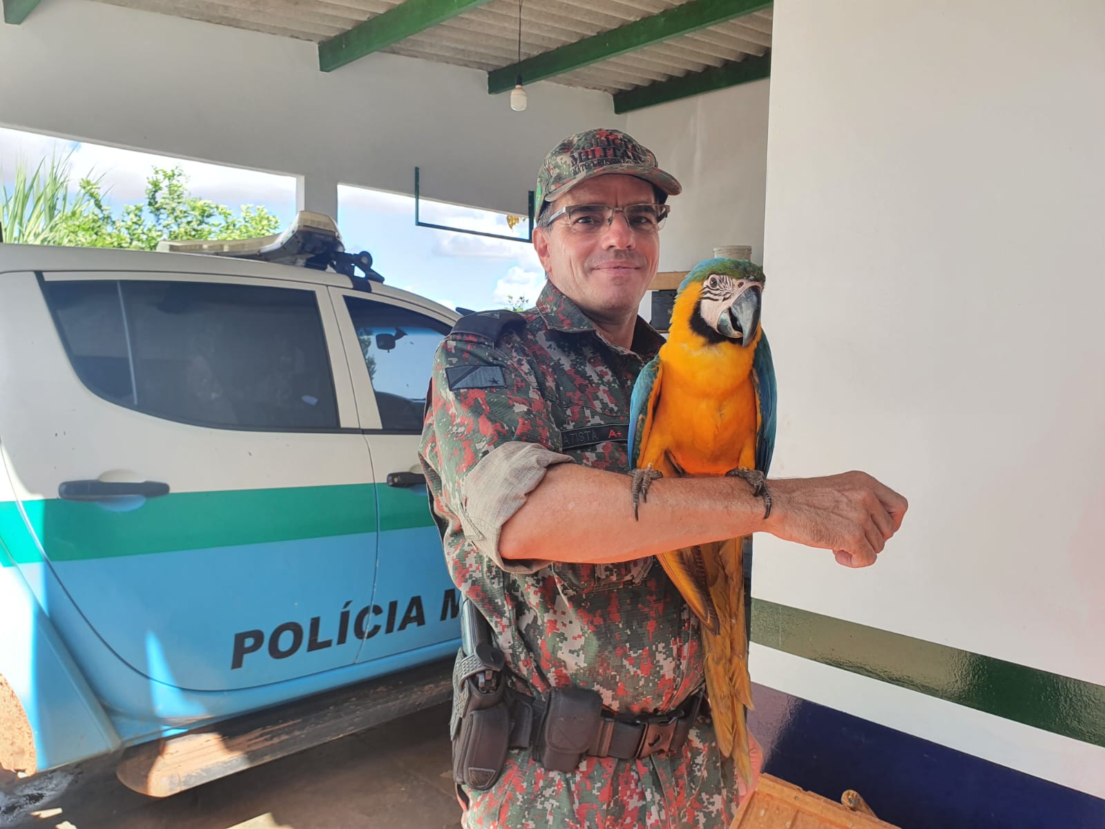 Campo Grande – Policiais Militares Ambientais foram acionados hoje (21) a tarde, por uma moradora da cidade de São Gabriel do Oeste, informando que haveria uma ave da espécie arara-canindé (Ara ararauna) aparentemente ferida, vítima de atropelamento