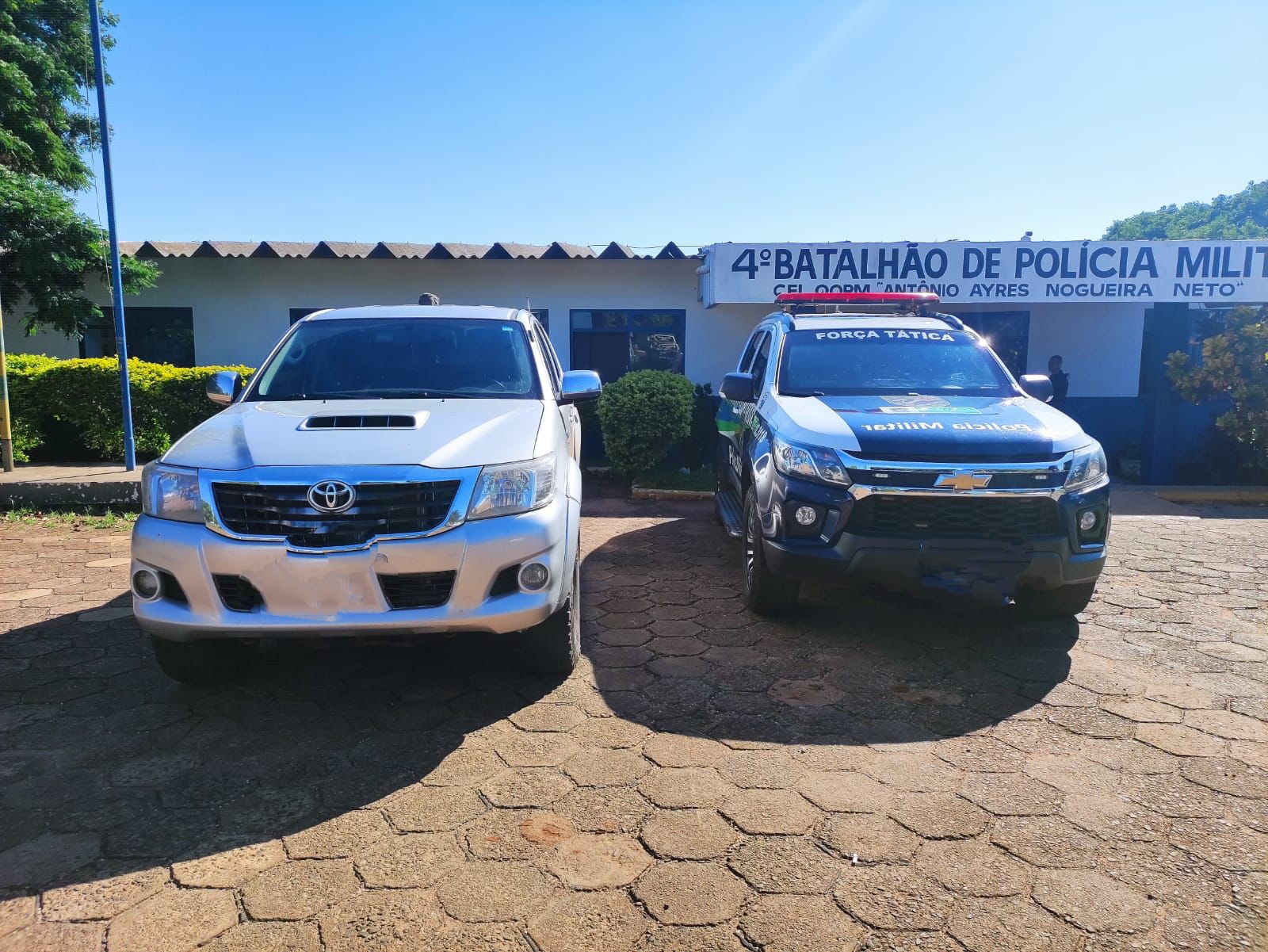 Ponta Porã (MS) – Na manhã de segunda-feira (07/02), Policiais Militares lotados no 4º BPM (Ponta Porã-MS) realizavam rondas ostensivas quando foram acionados via 190 sobre uma ocorrência de roubo a mão armada de uma caminhonete Hilux de cor prata, a