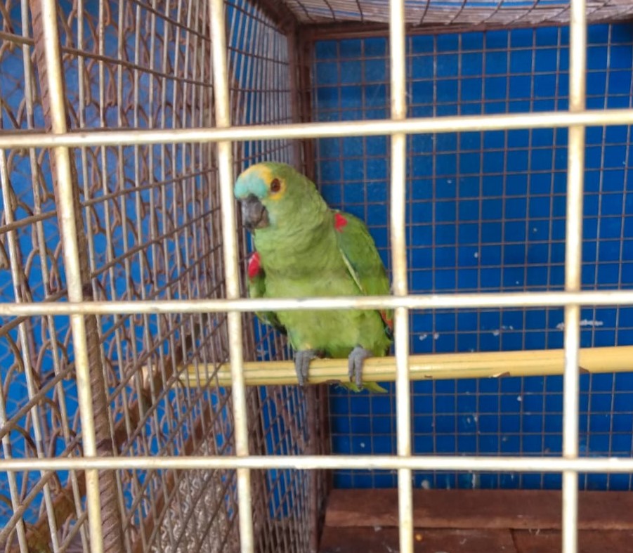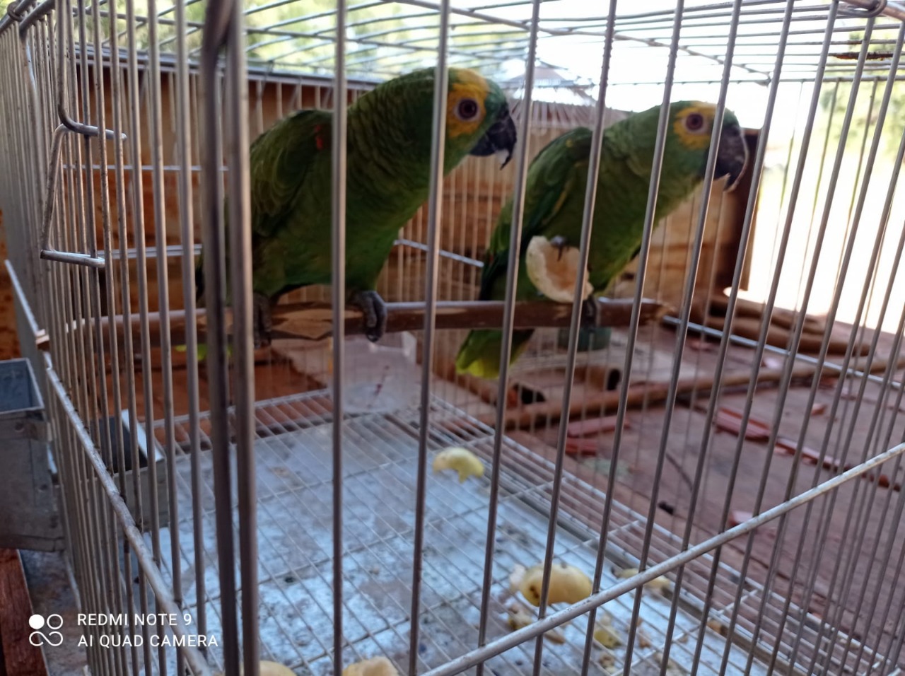 Campo Grande (MS) – Policiais Militares Ambientais de Amambai recolheram no início da tarde de hoje (7), dois animais silvestres da espécie conhecida como papagaio verdadeiro (Amazona aestiva), que estavam em uma gaiola em uma residência em uma chácara,