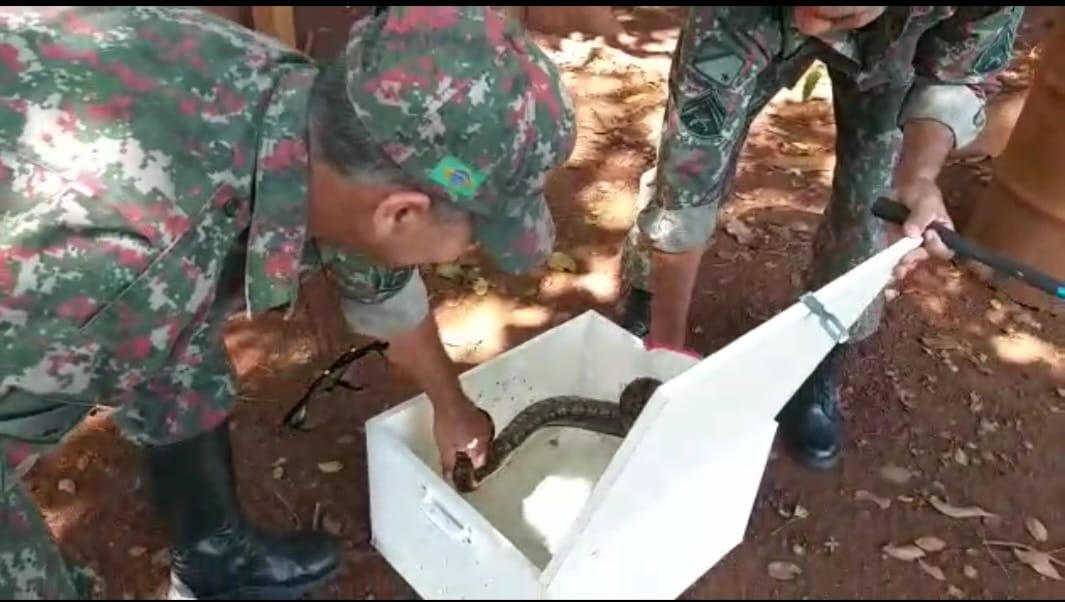 Campo Grande (MS) – Uma moradora do centro da cidade acionou os Policiais Militares Ambientais de Bela Vista ontem (2) no final da tarde, para realizar a captura de uma serpente que estava no quintal de sua residência. Os Policiais foram ao local e