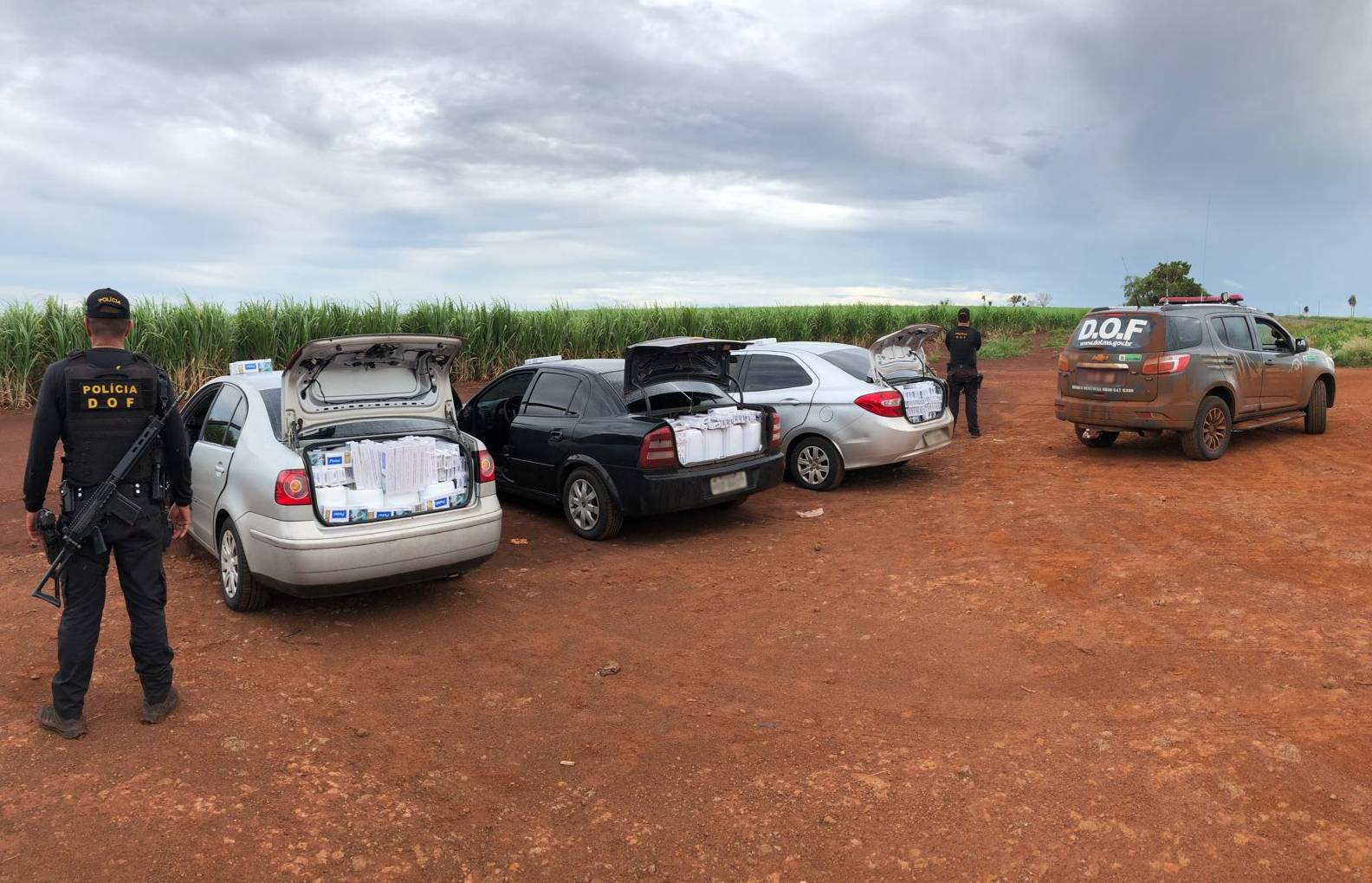Dourados (MS), 30 de janeiro – Policiais do Departamento de Operações de Fronteira (DOF) apreenderam, na tarde de sexta-feira (28/01), três veículos carregados com 3.050 pacotes de cigarros; 2.100 litros de herbicidas; e, 300 Kg de inseticida. A ação