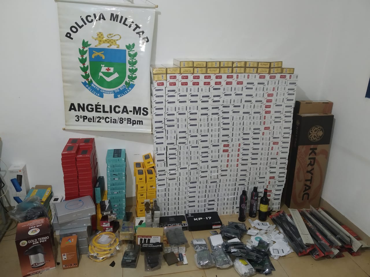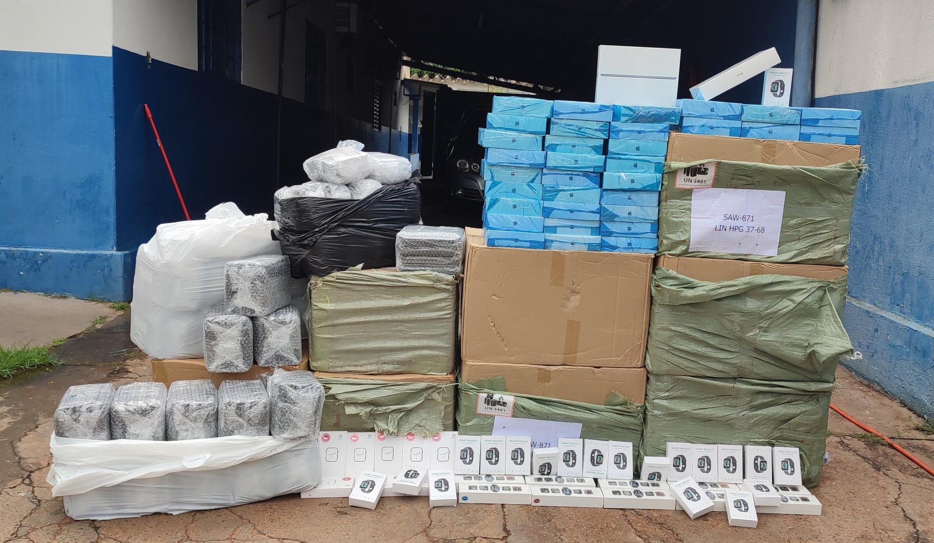 Durante a Operação Hórus, desencadeada pela SEJUSP/MS e pela Secretaria Nacional de Operações Integradas (SEOPI) do Ministério de Justiça e Segurança Pública, uma guarnição Policial Militar do 2º Batalhão fez apreensão mercadorias de origem