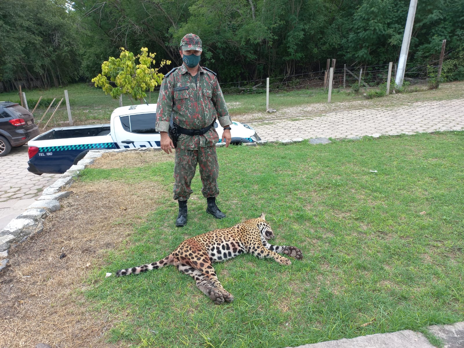 Campo Grande (MS) – Policiais Militares Ambientais de Corumbá foram procurados por um Policial Militar, que entregou hoje (28) pela manhã uma onça-pintada (Panthera onca) jovem vítima de atropelamento. O Policial informou que encontrou o animal
