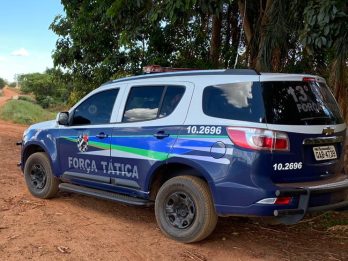 A Guarnição da Força Tática realizava patrulhamento pela Rua Paraná, no Bairro Lagoa Dourado, quando avistou um homem que, ao perceber a aproximação da viatura policial, tentou esconder o rosto. A atitude suspeita chamou a atenção dos militares, que