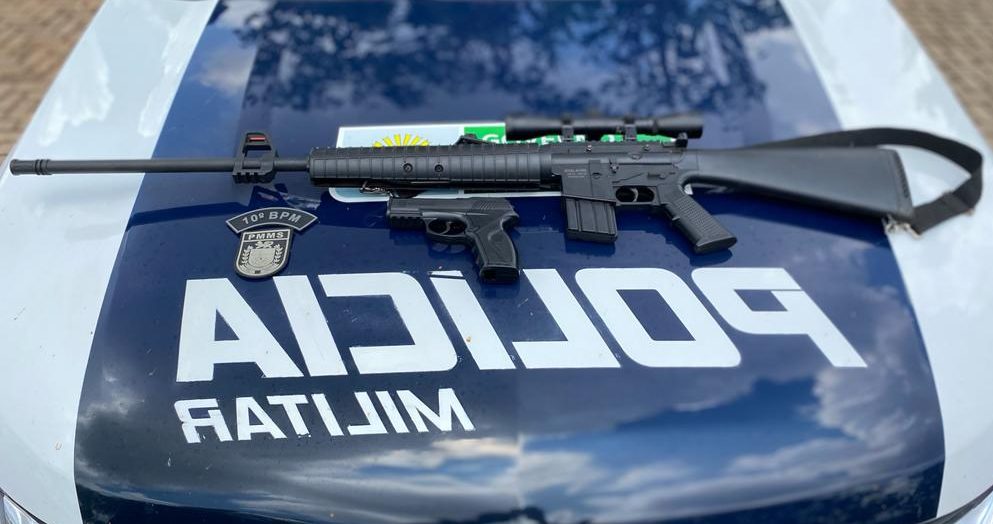 Campo Grande (MS), na tarde de hoje (07/01), duas guarnições do 10º BPM atenderam à um chamado de uma solicitante que informou estar trancada dentro do quarto pelo seu marido e que o mesmo possuía duas armas de fogo. A vítima franqueou a entrada da
