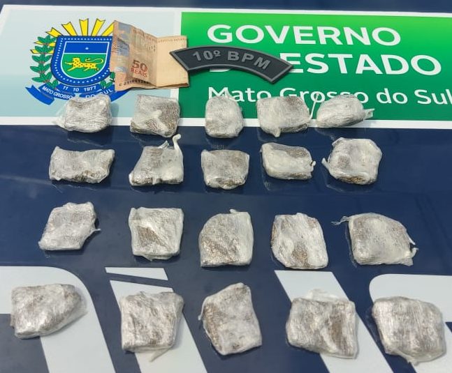 Campo Grande (MS), na manhã de hoje (06/01), durante policiamento ostensivo no Parque do Lageado, a equipe policial abordou dois indivíduos que ao verem a viatura tentaram fugir. Que na busca pessoal e no local onde se encontravam foram localizadas 20