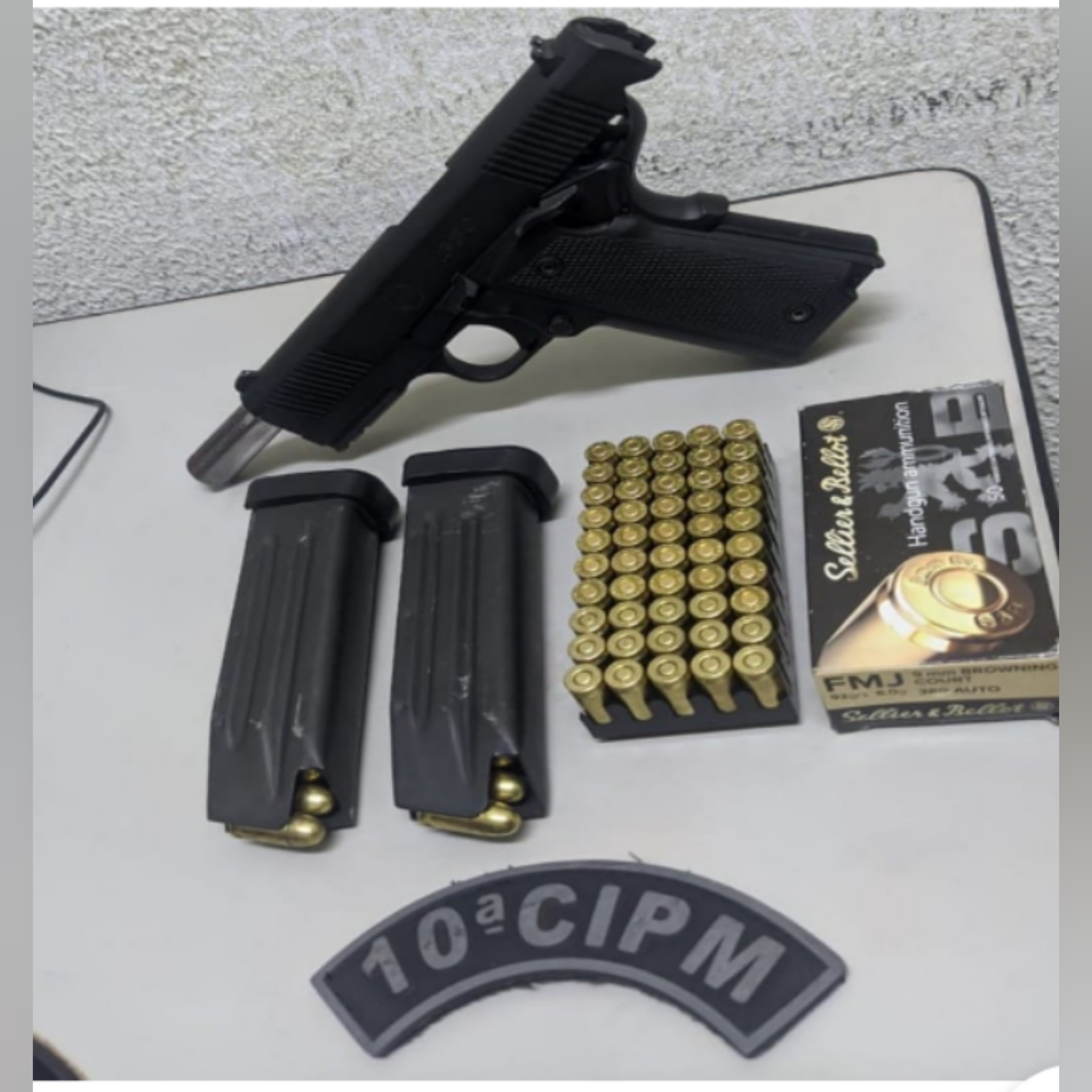 Policiais da 10ª Companhia Independente da Polícia Militar, na noite do dia 01 de janeiro, prenderam um homem em posse de uma arma de fogo e diversas munições. Após solicitação via CIOPS, uma guarnição policial militar deslocou para atendimento de