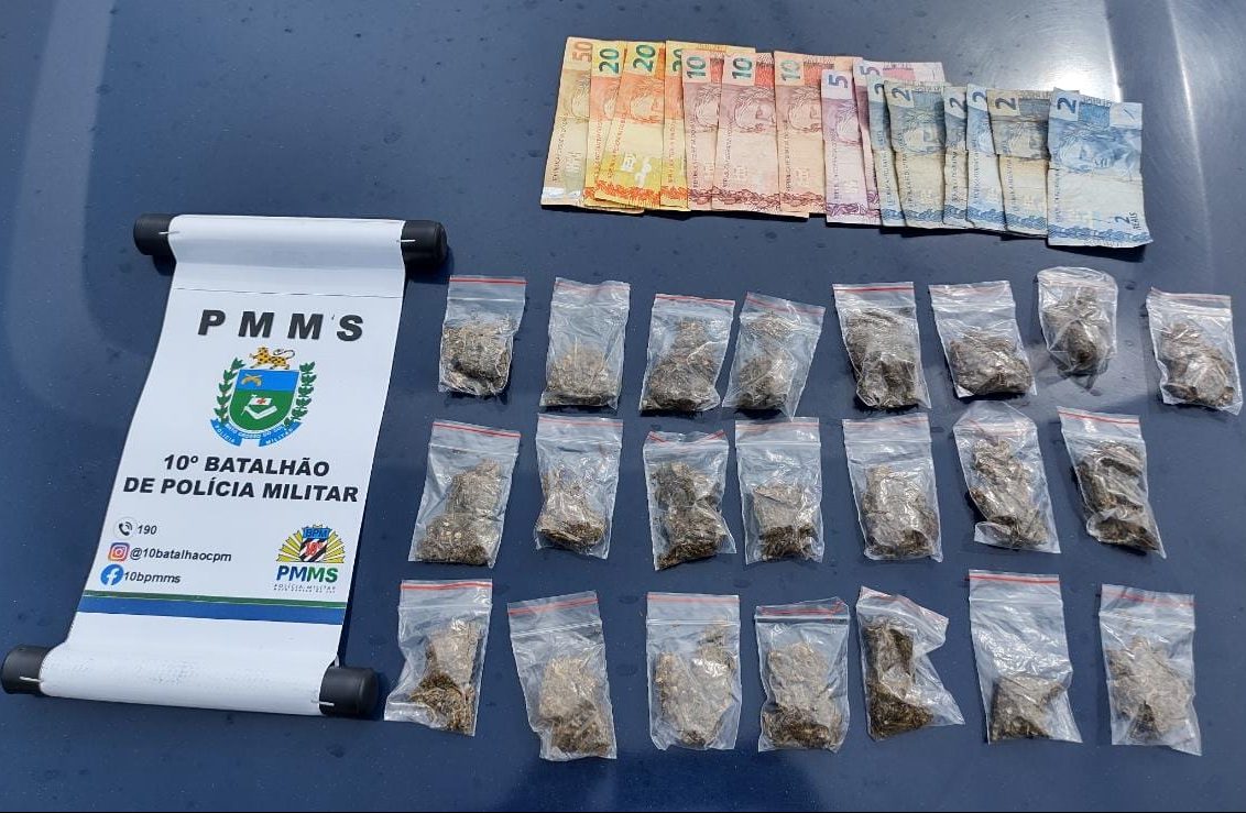 Campo Grande (MS), na tarde desta segunda (03/01), em rondas pelo bairro Universitário, a guarnição do 10ºBPM recebeu uma denúncia de que um indivíduo estaria vendendo drogas e que escondia em uma sacola de mercado numa lixeira. Foi feita a abordagem e