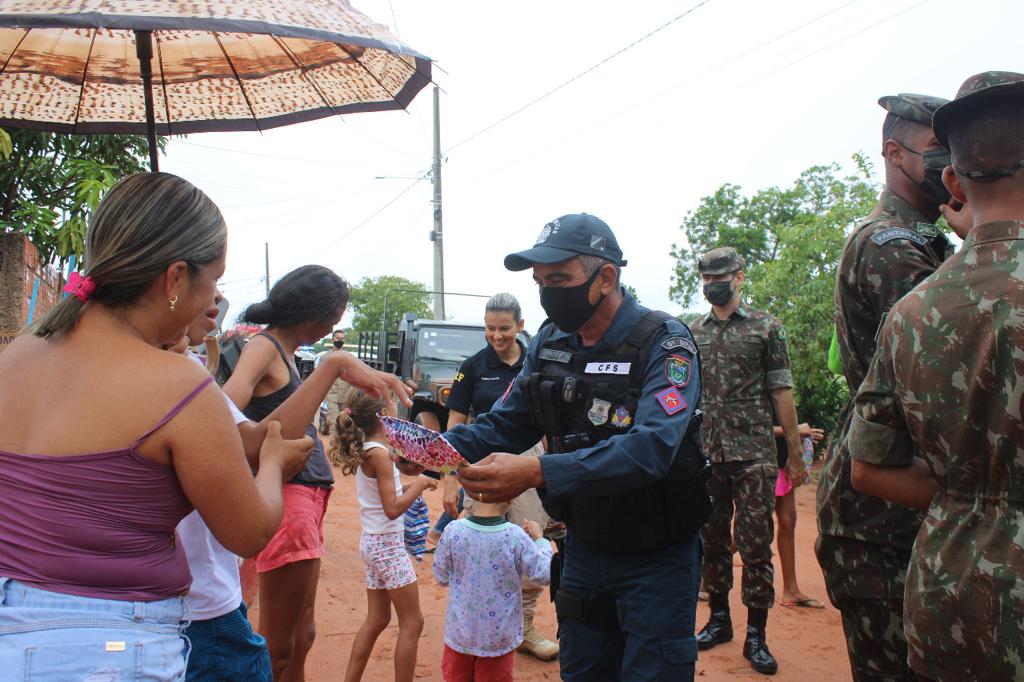 Coxim (MS): O 5º Batalhão de Polícia Militar, juntamente com o 47º Batalhão de Infantaria e demais forças de segurança realizam a distribuição de brinquedos em Coxim. A distribuição dos presentes de natal foram entregues as crianças e adolescentes