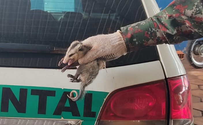 Campo Grande (MS) – Policiais Militares Ambientais de Dourados foram acionados ontem (15) à tarde, pela funcionária de uma concessionária de moto, localizada no centro da cidade, em virtude do aparecimento de um filhote de gambá na loja. Os