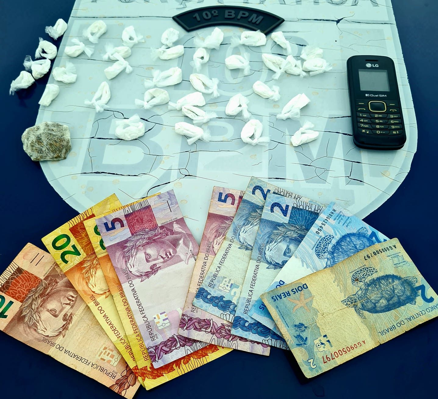 Campo Grande (MS), na manhã de terça-feira (14/12), em rondas pelo Jardim Colibri, a guarnição policial do 10º BPM abordou três indivíduos suspeito, e em revista pessoal foi encontrado com um deles, porções de cocaína e de maconha e a quantia de R$