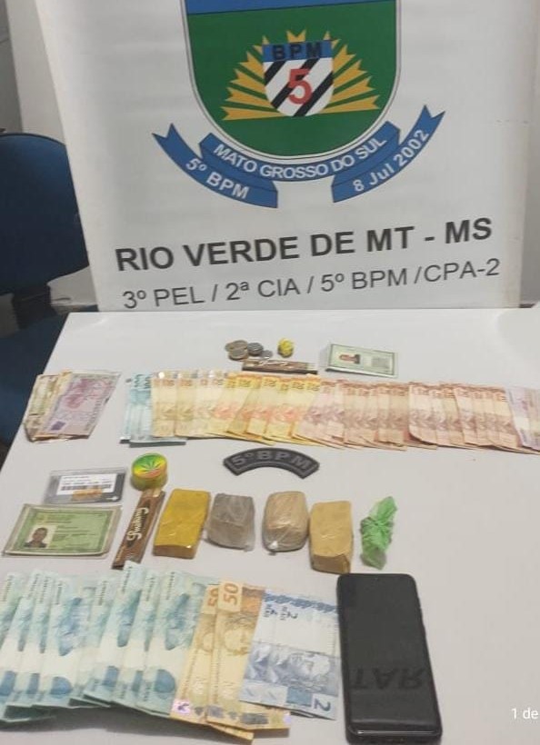 Coxim (MS): A Polícia Militar prendeu em flagrante na noite de ontem (01/12), dois homens de 37 e 58 anos por tráfico e apreende dinheiro, droga e celular em Rio Verde de MT/MS. A Guarnição de Serviço realizava policiamento na Avenida Eurico Sebastião