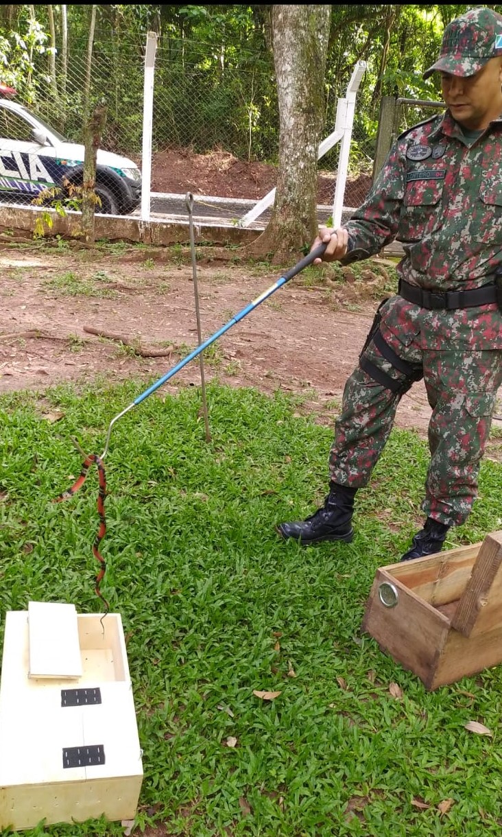 Campo Grande (MS) – Policiais Militares Ambientais de Campo Grande receberam uma chamada telefônica de uma moradora do bairro Santa Luzia, na capital, hoje (26) às 03h00, informando sobre uma serpente, que aparentava ser peçonhenta e que estaria