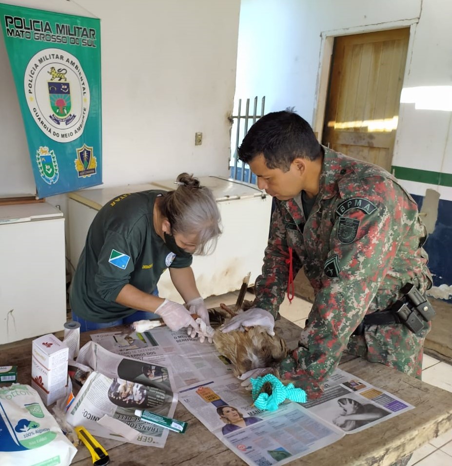 Campo Grande (MS) – Policiais Militares Ambientais de Miranda receberam hoje (26) às 10h30, de um funcionário da Secretaria do Meio Ambiente de Bodoquena, uma ave da espécie Cariama cristata (Seriema), que foi entregue a ele por populares que