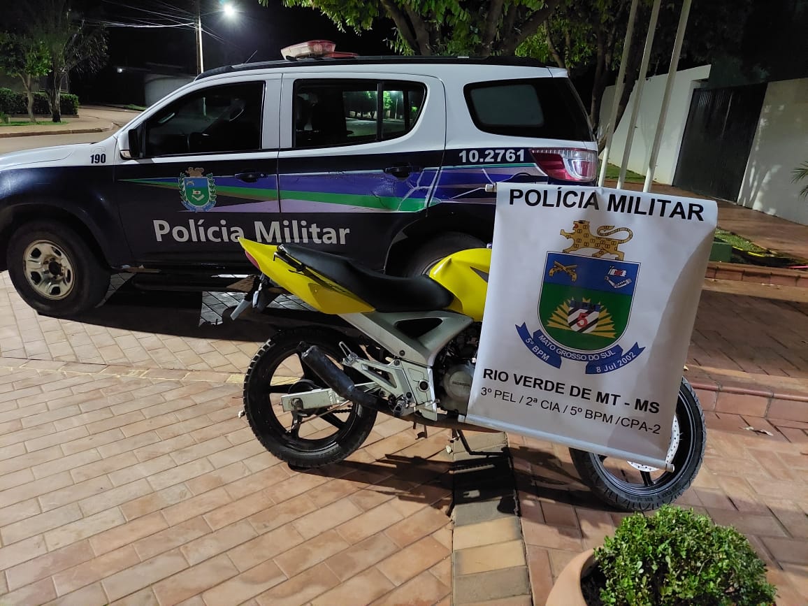 Coxim (MS): A Polícia Militar apreendeu na noite de ontem (09/11), uma motocicleta irregular e prendeu um jovem de 23 anos por porte de drogas em Rio Verde de MT/MS. A Guarnição de Serviço realizava rondas pela Avenida Tiradentes quando viram um jovem