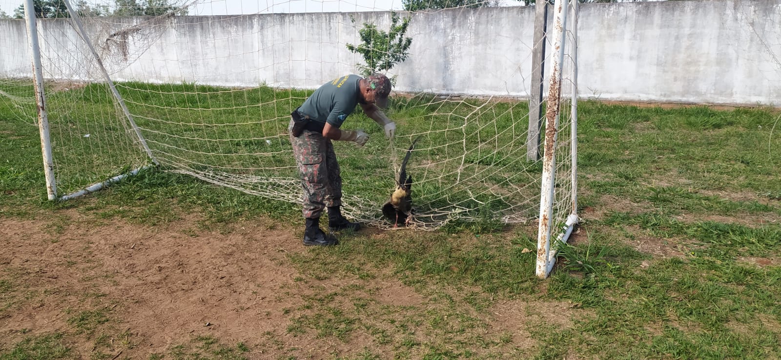 Campo Grande (MS) – Policiais Militares Ambientais de Naviraí resgataram um animal silvestre da espécie Theristicus caudatus (Curicaca) no bairro BNH Velho hoje (8) às 7h20. Uma moradora telefonou pela manhã para a PMA, informando que a ave estava