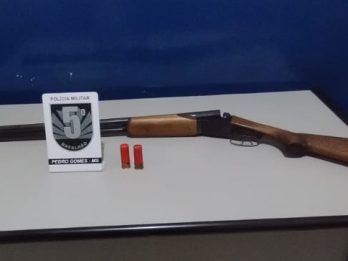 Coxim (MS) – A Polícia Militar apreendeu na noite desta quinta-feira (2), uma espingarda calibre 12 durante atendimento a uma denúncia anônima, que relatava um homem portando uma arma de fogo no interior de um veículo na área central de Pedro Gomes-MS.