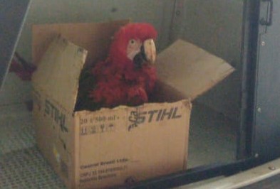 Coxim (MS): Polícia Militar resgatou na noite de hoje (24/10) uma arara que era atacada por cães em Rio Verde de MT/MS. A Guarnição de Serviço realizava policiamento pela Rua Santa Catarina no Bairro Jardim Semíramis quando depararam com uma arara