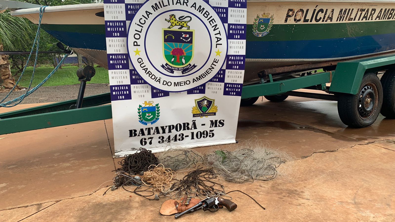 Campo Grande (MS) – Policiais Militares Ambientais de Batayporã, que trabalham na operação Hot Point, realizam fiscalização preventiva no rio Ivinhema, desde a manhã de ontem (23) e já apreenderam redes de pesca, anzóis de galho e arma de fogo e