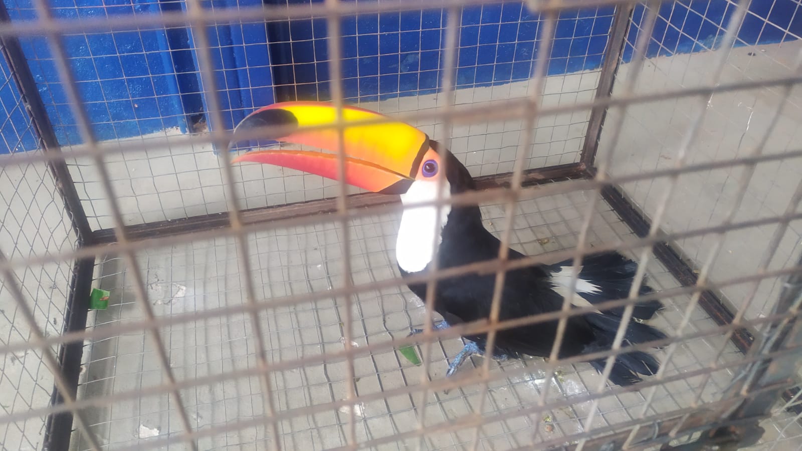 Campo Grande (MS) – Um animal da espécie Ramphastos toco, conhecida como tucano foi captura hoje (15) no início da tarde, por Policiais Militares Ambientais de Bela Vista. Os Militares receberam um chamado de uma moradora do bairro Água Doce, que