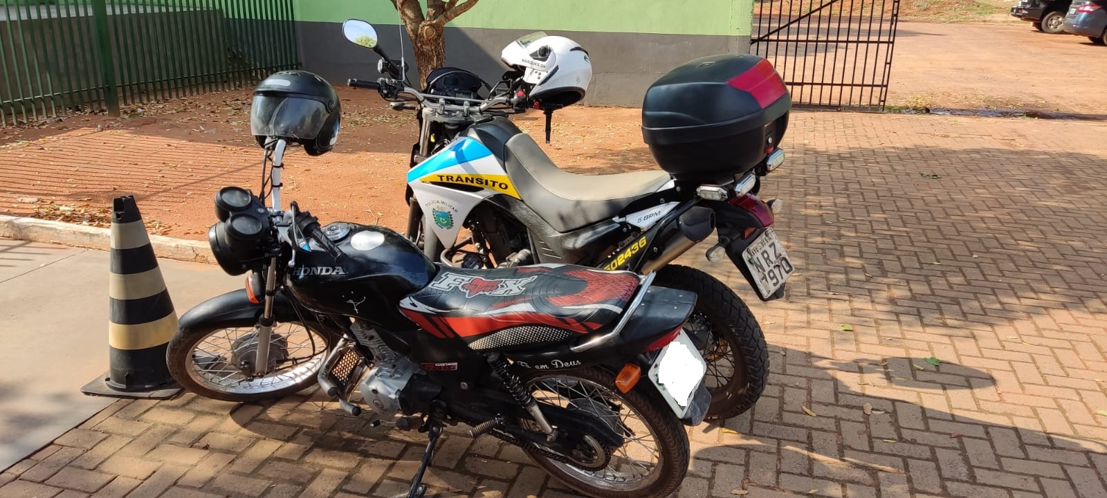 Nova Andradina (MS) – Na manhã de quinta-feira (23) os policiais militares da equipe de Radiopatrulha, durante rondas ostensivas e preventivas, flagraram um adolescente de 15 anos conduzindo uma motocicleta com sinal identificador adulterado em Amandina. A