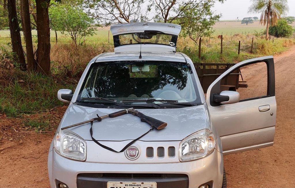 Em Porto Murtinho, na tarde de sábado (18), às 17h40min, uma equipe da PM, após receber uma denúncia anônima, deslocou até o Retiro Chateloodo, onde constatou que um veículo Saveiro, que estava abandonado e coberto com galhos. Foi verificado, em seu