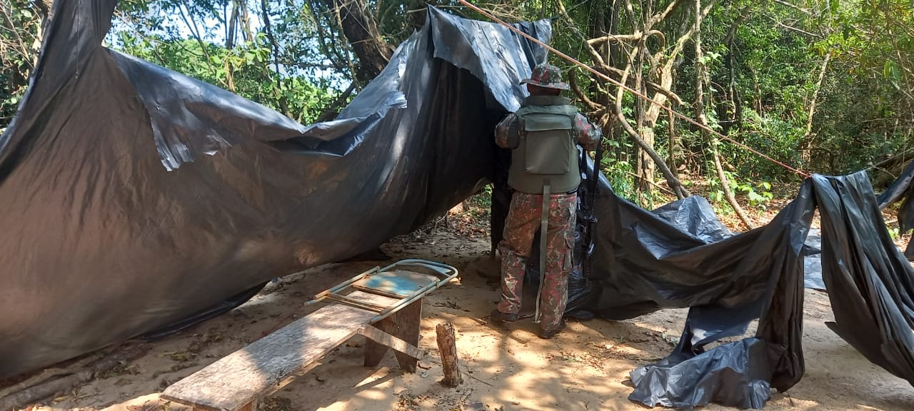 Campo Grande (MS) – Policiais Militares Ambientais de Bela Vista, que trabalham na operação Hot Point, realizavam monitoramento de cardume em patrulhamento fluvial no rio Apa e desmontaram ontem (16) um acampamento de caçadores, à margem do rio, a