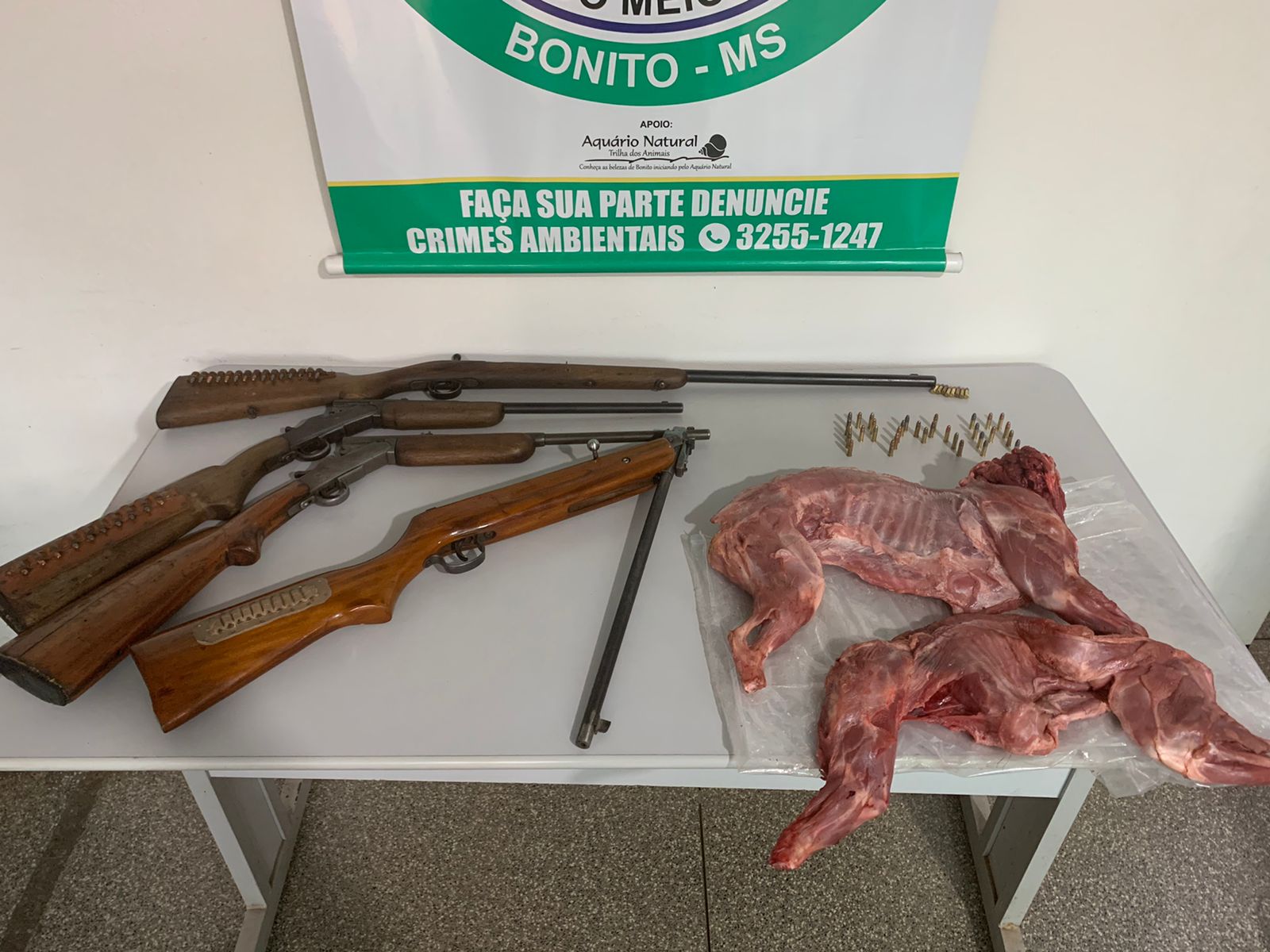 Campo Grande (MS) – Policiais Militares Ambientais de Bonito receberam denúncias de caça ilegal e realizavam patrulhamento em uma fazenda no município, localizada a 25 km da cidade ontem (16). Os Policiais foram ao local da denúncia e encontraram os