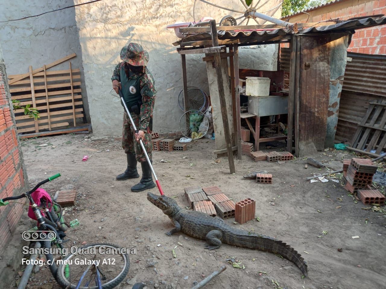 Campo Grande (MS) – Policiais Militares Ambientais de Porto Murtinho realizaram a captura de um jacaré no perímetro urbano da cidade. Uma moradora do bairro Jockey Club acionou a PMA ontem (16) no final da tarde, informando que o animal estava em um