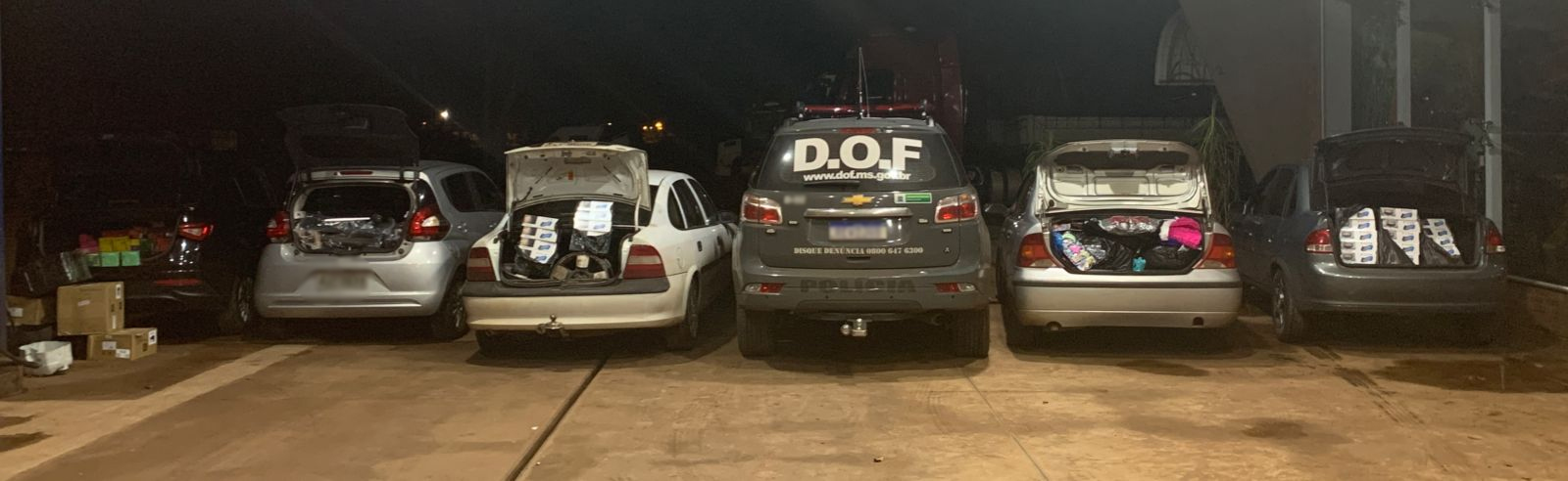 Dourados (MS), 17 de setembro – Policiais do Departamento de Operações de Fronteira (DOF) apreenderam, na madrugada desta sexta-feira, os seguintes veículos: GM Classic; Ford Focus; Fiat Mobi; GM Vectra; e, Fiat Cronos, todos carregados com produtos