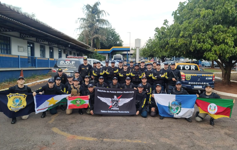 Dourados (MS), 16 de setembro – Policiais do Departamento de Operações de Fronteira (DOF) participaram, como instrutores, do 1º Curso de Aperfeiçoamento Tático Ostensivo Rodoviário realizado pelo Batalhão de Polícia Militar Rodoviária (BPMRv), com