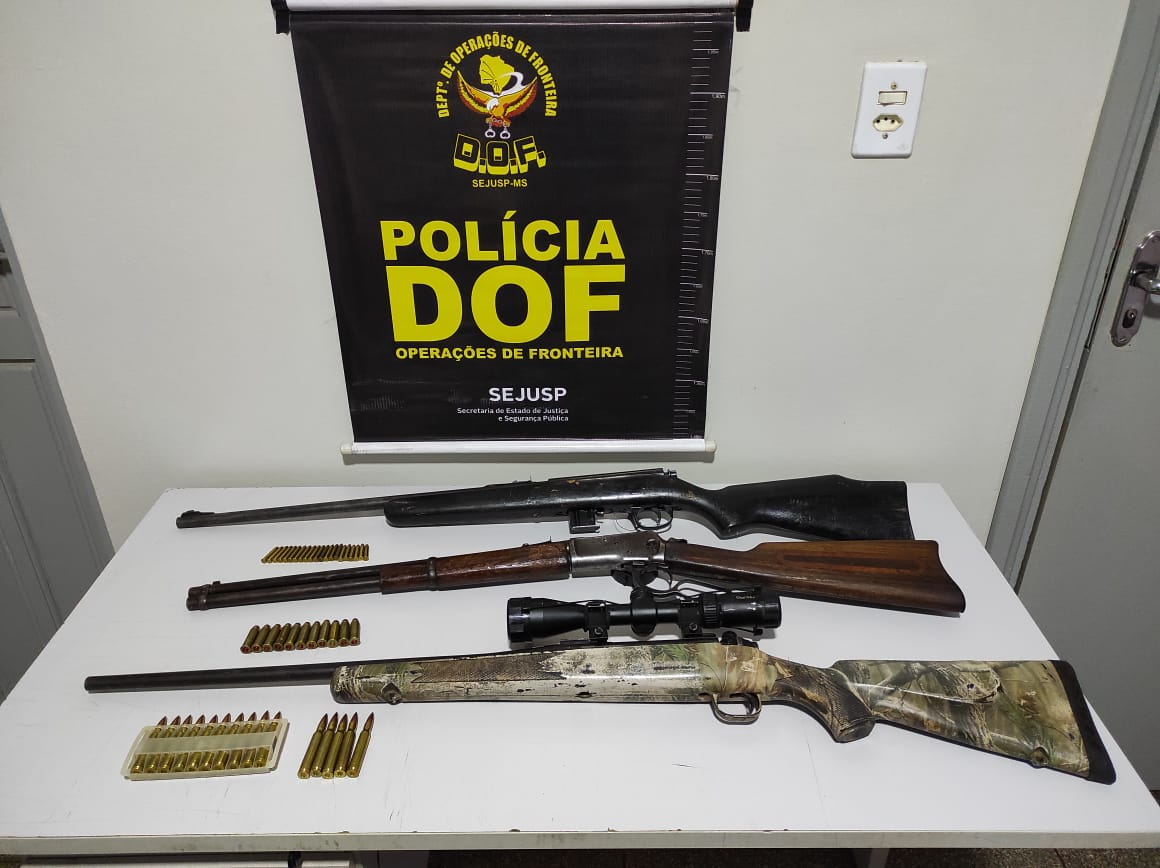 Dourados (MS), 9 de setembro – Policiais do Departamento de Operações de Fronteira (DOF) apreenderam, na madrugada desta quinta-feira, três armas de fogo e 47 munições de calibres diferentes. A ação ocorreu em virtude da Operação Hórus, parceria