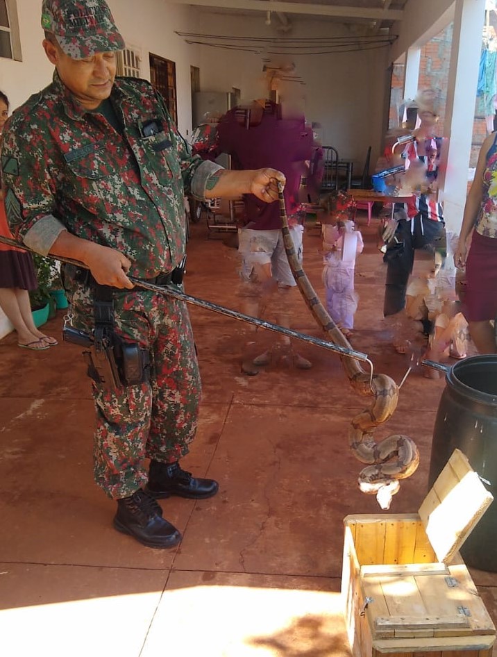 Campo Grande (MS) – Policiais Militares Ambientais de Campo Grande capturaram serpente da espécie Boa constrictor (jiboia) ontem (7) no final da tarde. Uma moradora (29) acionou a PMA, informando sobre a presença da serpente no quintal de sua