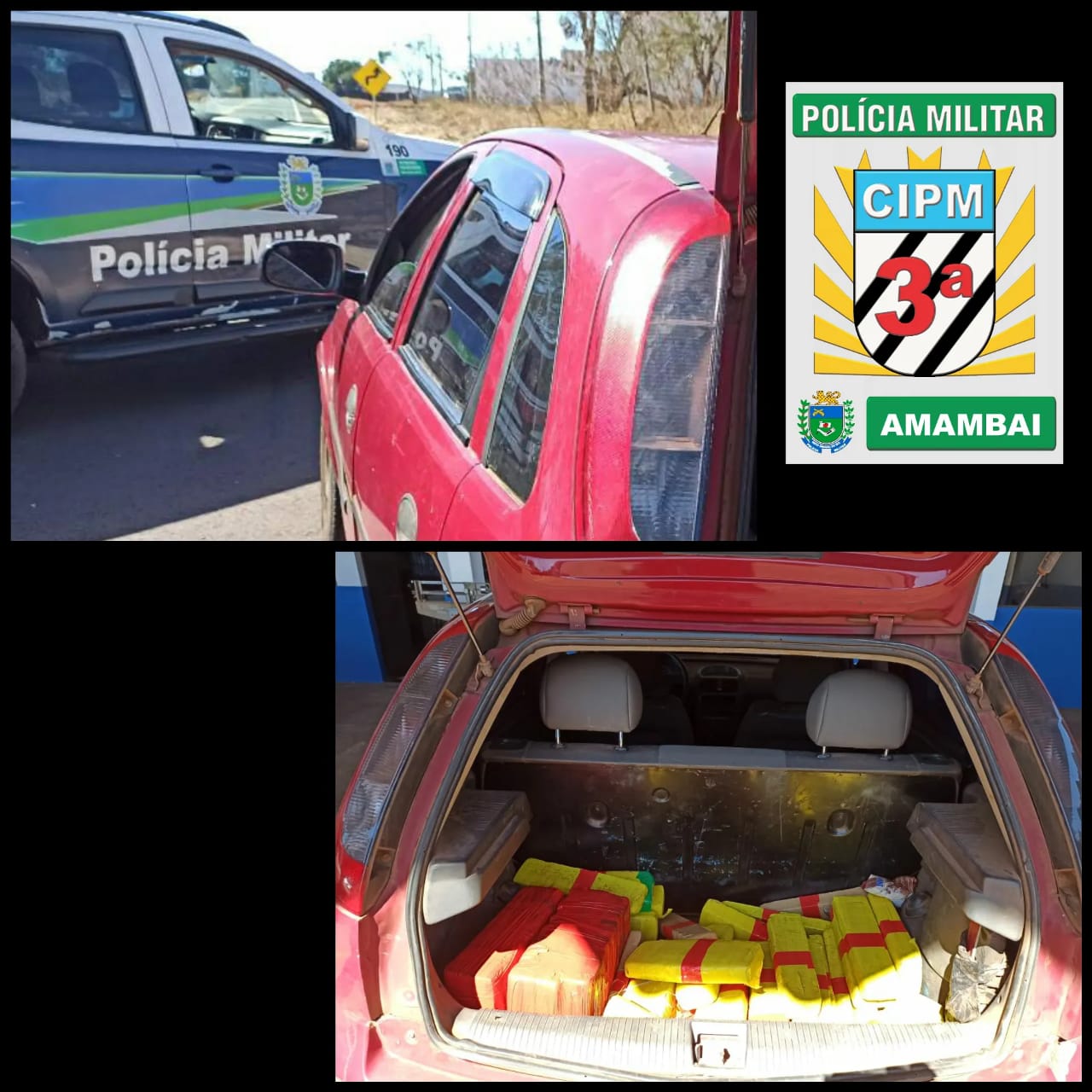 3ª CIPM – Na manhã desta terça-feira (03) uma equipe de Radiopatrulha da Polícia Militar de Amambai apreendeu 61 kg de maconha que era transportada em um veículo com queixa de furto no estado de São Paulo. Os policiais realizavam policiamento