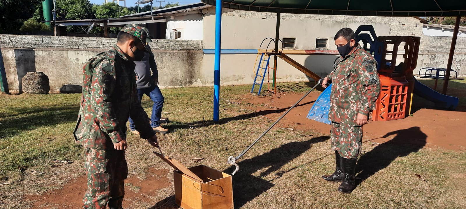 Campo Grande (MS) – Policiais Militares Ambientais de Bonito capturaram uma serpente da espécie Boa constrictor (jiboia) ontem (29) à tarde. O funcionário de uma escola particular, localizada no região central de Bonito, acionou a PMA, informando